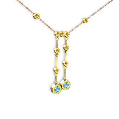 Akuamarin ve sitrin 8 ayar altın kolye (40 cm rose altın rolo zincir)