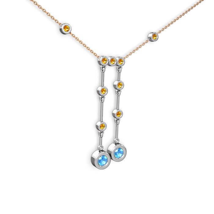 Akuamarin ve sitrin 8 ayar beyaz altın kolye (40 cm rose altın rolo zincir)