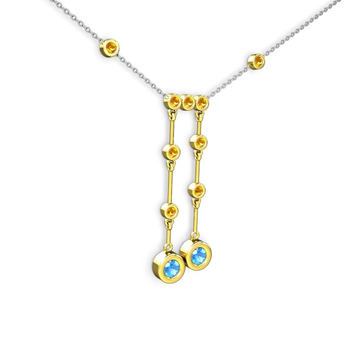 Akuamarin ve sitrin 925 ayar altın kaplama gümüş kolye (40 cm beyaz altın rolo zincir)