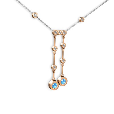 Akuamarin ve swarovski 18 ayar rose altın kolye (40 cm beyaz altın rolo zincir)