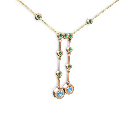 Akuamarin ve yeşil kuvars 8 ayar rose altın kolye (40 cm altın rolo zincir)