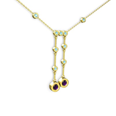 Ametist ve akuamarin 8 ayar altın kolye (40 cm altın rolo zincir)