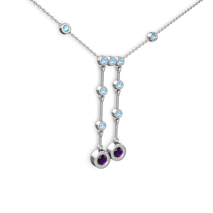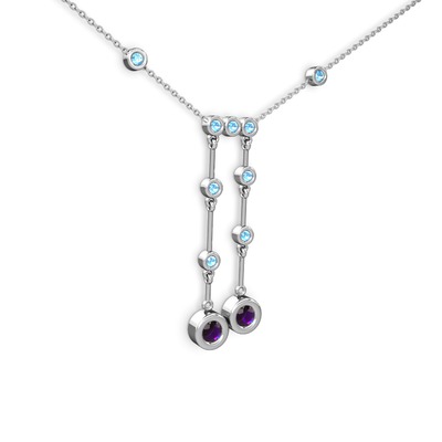 Ametist ve akuamarin 8 ayar beyaz altın kolye (40 cm beyaz altın rolo zincir)