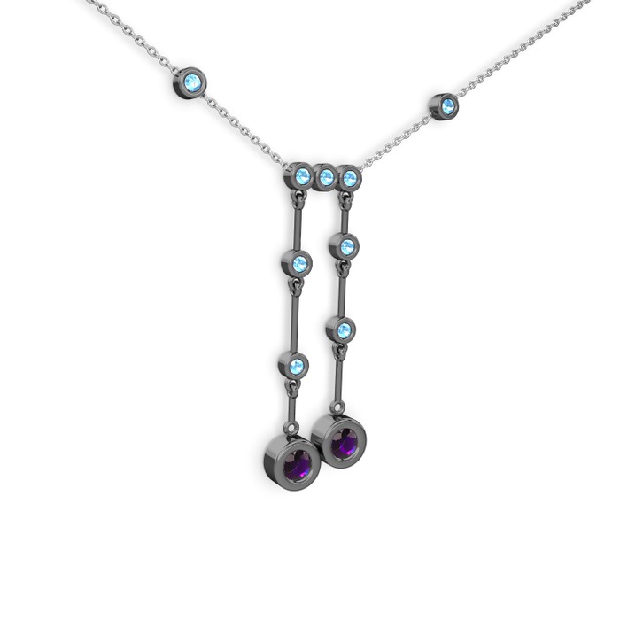 Ametist ve akuamarin 925 ayar siyah rodyum kaplama gümüş kolye (40 cm gümüş rolo zincir)