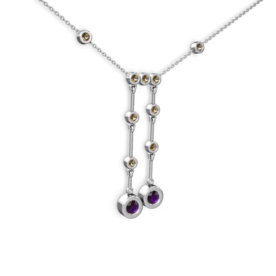 Ametist ve dumanlı kuvars 925 ayar gümüş kolye (40 cm gümüş rolo zincir)