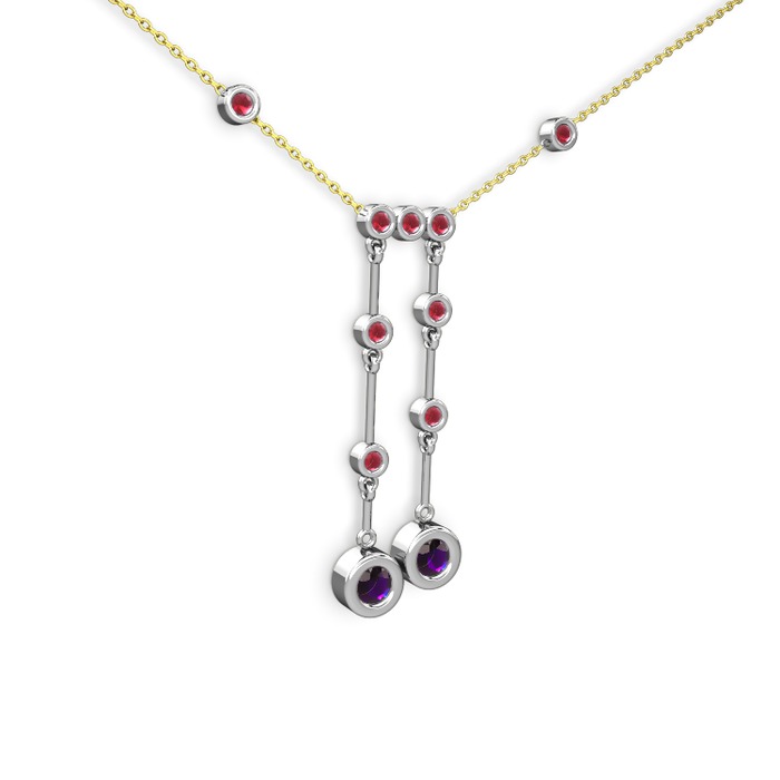 Ametist ve kök yakut 14 ayar beyaz altın kolye (40 cm altın rolo zincir)