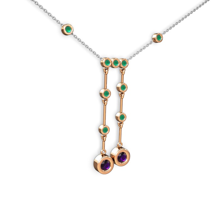 Ametist ve kök zümrüt 14 ayar rose altın kolye (40 cm beyaz altın rolo zincir)