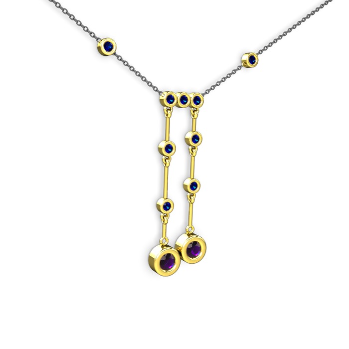 Ametist ve lab safir 14 ayar altın kolye (40 cm gümüş rolo zincir)