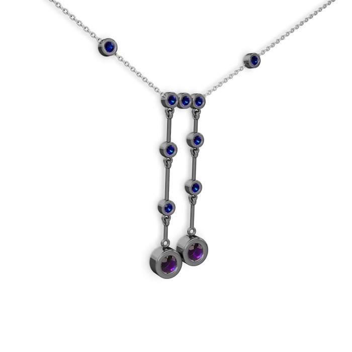 Ametist ve lab safir 925 ayar siyah rodyum kaplama gümüş kolye (40 cm gümüş rolo zincir)