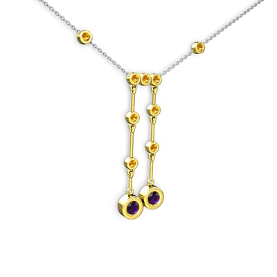 Ametist ve sitrin 14 ayar altın kolye (40 cm gümüş rolo zincir)