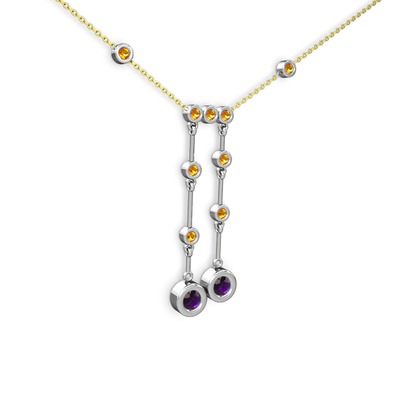Ametist ve sitrin 14 ayar beyaz altın kolye (40 cm altın rolo zincir)