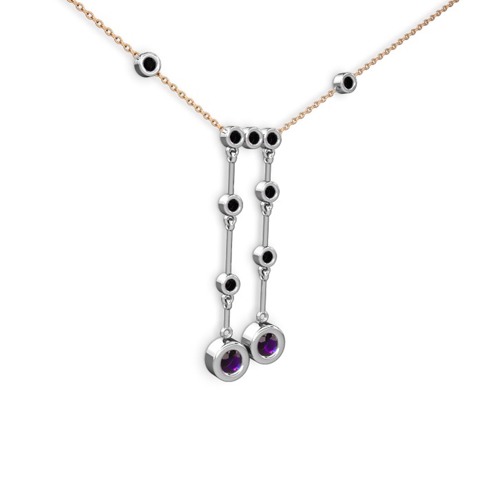 Ametist ve siyah zirkon 8 ayar beyaz altın kolye (40 cm rose altın rolo zincir)