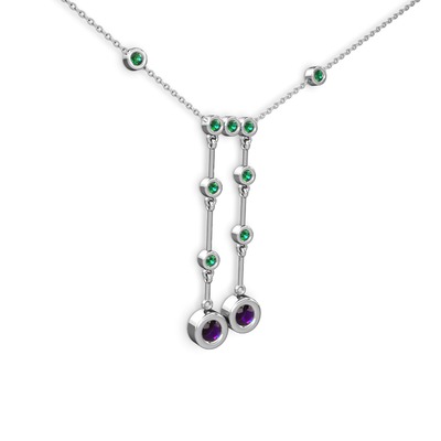 Ametist ve yeşil kuvars 18 ayar beyaz altın kolye (40 cm beyaz altın rolo zincir)