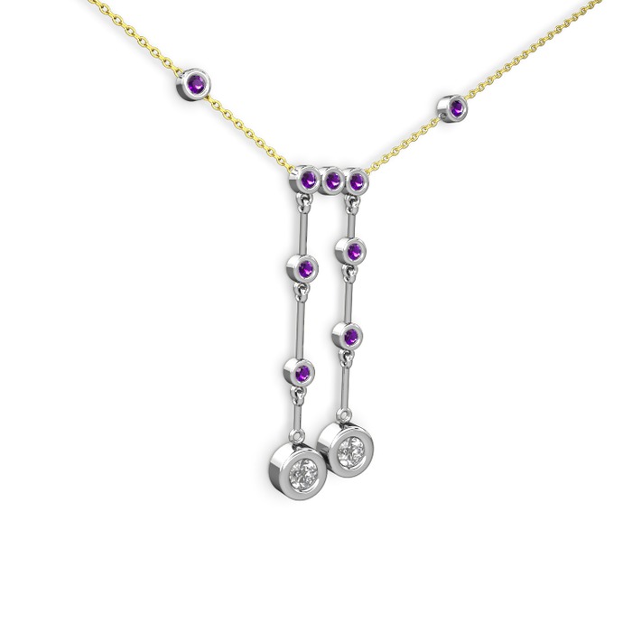 Beyaz zirkon ve ametist 8 ayar beyaz altın kolye (40 cm altın rolo zincir)