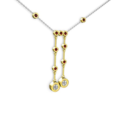 Beyaz zirkon ve garnet 14 ayar altın kolye (40 cm gümüş rolo zincir)