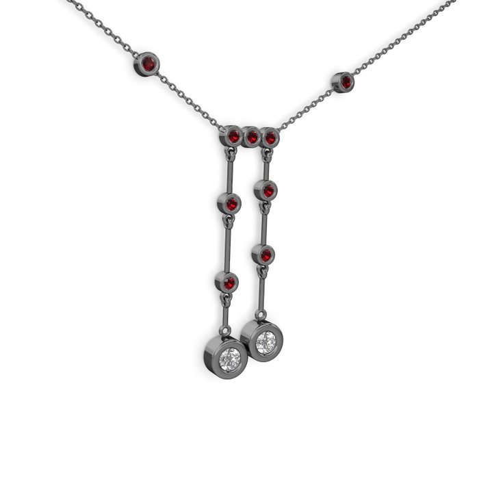 Beyaz zirkon ve garnet 925 ayar siyah rodyum kaplama gümüş kolye (40 cm gümüş rolo zincir)
