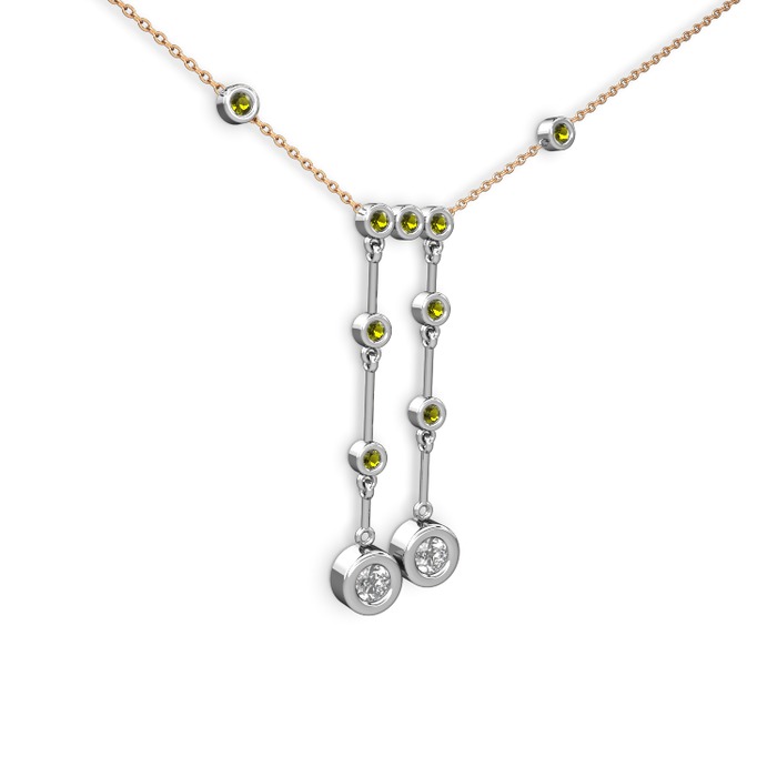 Beyaz zirkon ve peridot 925 ayar gümüş kolye (40 cm gümüş rolo zincir)