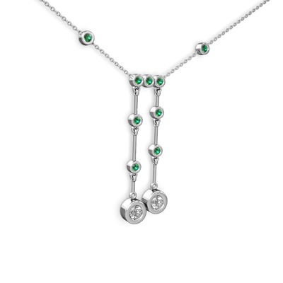 Beyaz zirkon ve yeşil kuvars 18 ayar beyaz altın kolye (40 cm beyaz altın rolo zincir)