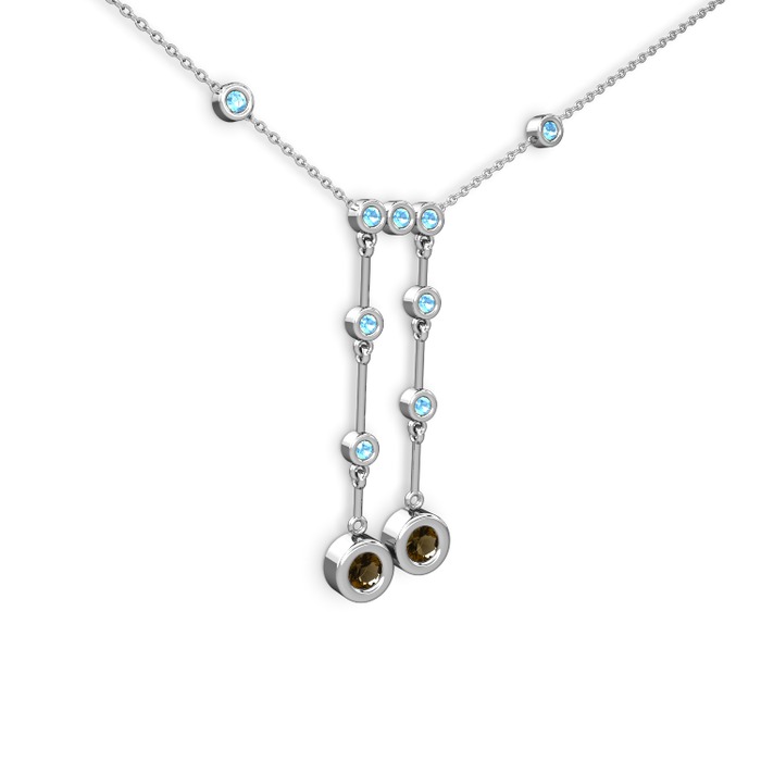 Dumanlı kuvars ve akuamarin 14 ayar beyaz altın kolye (40 cm beyaz altın rolo zincir)