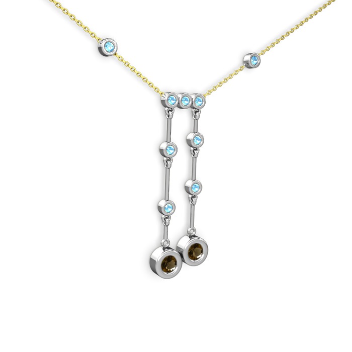 Dumanlı kuvars ve akuamarin 18 ayar beyaz altın kolye (40 cm altın rolo zincir)