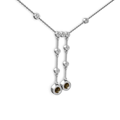 Dumanlı kuvars ve pırlanta 8 ayar beyaz altın kolye (0.324 karat, 40 cm gümüş rolo zincir)