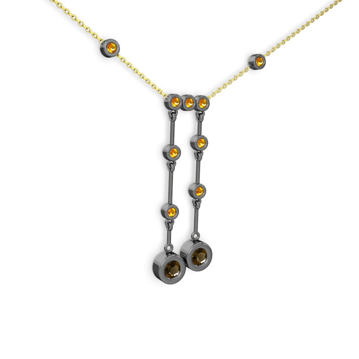 Dumanlı kuvars ve sitrin 925 ayar siyah rodyum kaplama gümüş kolye (40 cm gümüş rolo zincir)