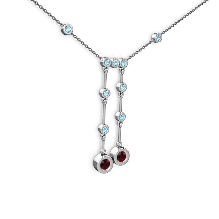 Garnet ve akuamarin 925 ayar gümüş kolye (40 cm gümüş rolo zincir)