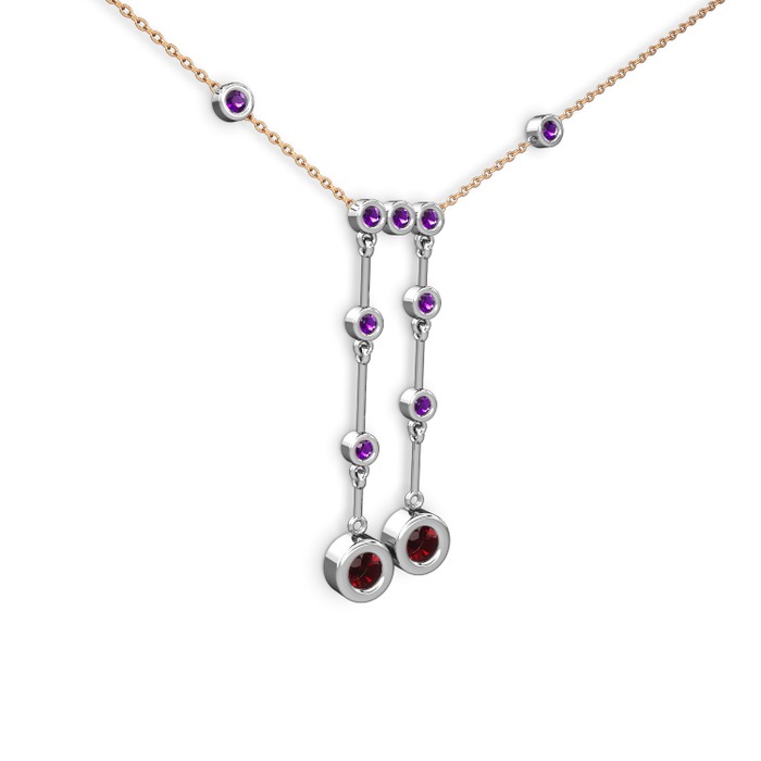 Garnet ve ametist 925 ayar gümüş kolye (40 cm rose altın rolo zincir)