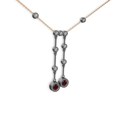 Garnet ve beyaz zirkon 925 ayar siyah rodyum kaplama gümüş kolye (40 cm rose altın rolo zincir)