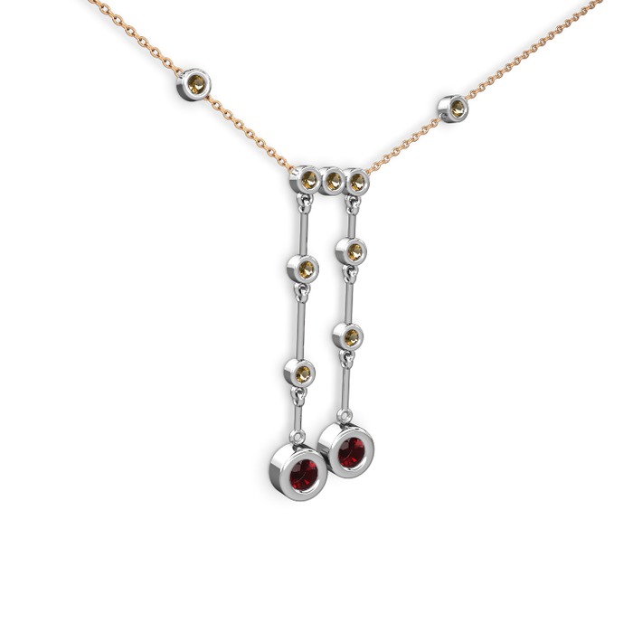 Garnet ve dumanlı kuvars 925 ayar gümüş kolye (40 cm rose altın rolo zincir)