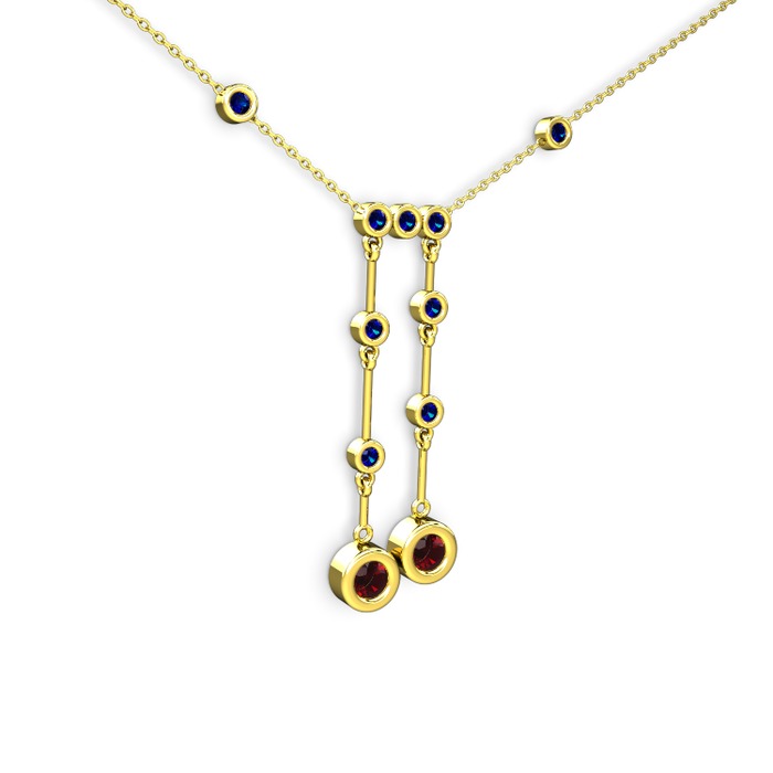 Garnet ve lab safir 14 ayar altın kolye (40 cm altın rolo zincir)