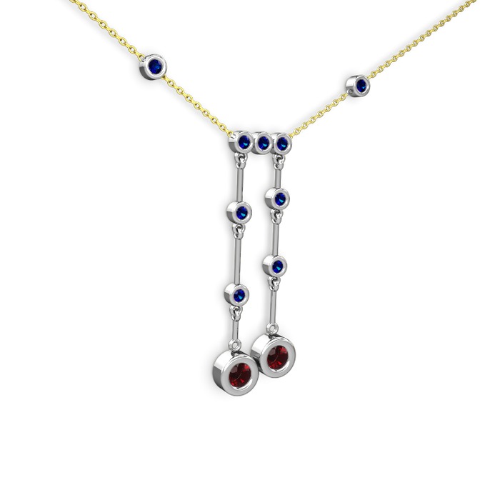 Garnet ve lab safir 8 ayar beyaz altın kolye (40 cm altın rolo zincir)