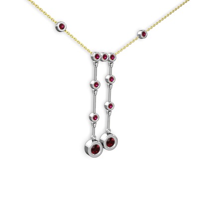 Garnet ve rodolit garnet 8 ayar beyaz altın kolye (40 cm altın rolo zincir)