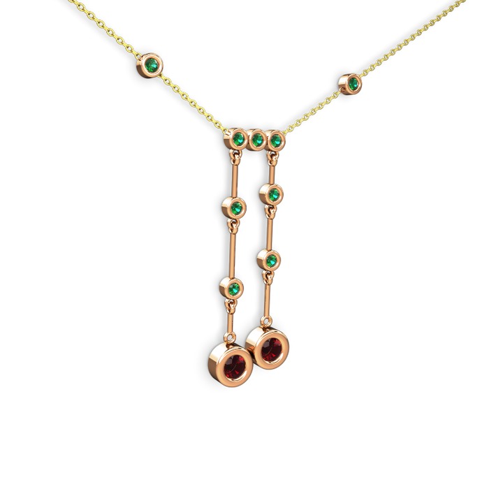 Garnet ve yeşil kuvars 8 ayar rose altın kolye (40 cm altın rolo zincir)