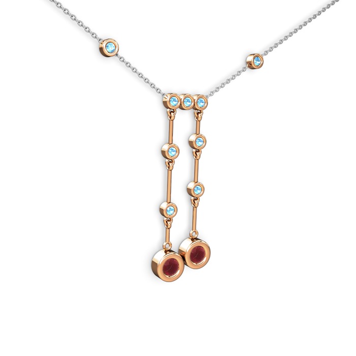 Kök yakut ve akuamarin 925 ayar rose altın kaplama gümüş kolye (40 cm beyaz altın rolo zincir)