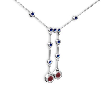 Kök yakut ve lab safir 14 ayar beyaz altın kolye (40 cm gümüş rolo zincir)
