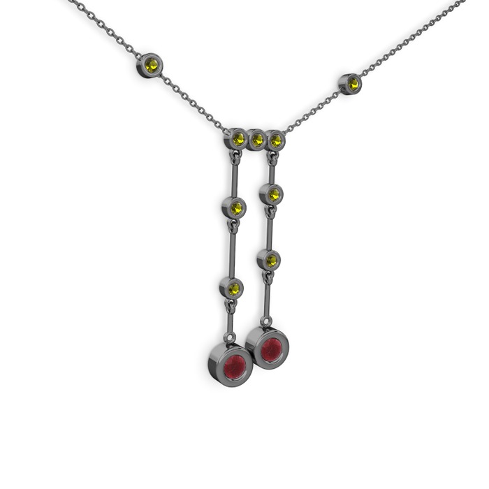 Kök yakut ve peridot 925 ayar siyah rodyum kaplama gümüş kolye (40 cm gümüş rolo zincir)