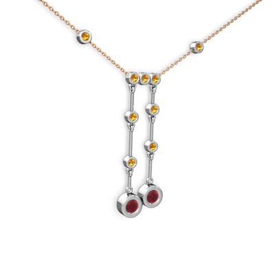 Kök yakut ve sitrin 925 ayar gümüş kolye (40 cm rose altın rolo zincir)