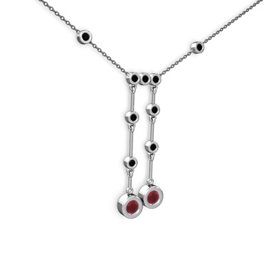 Kök yakut ve siyah zirkon 8 ayar beyaz altın kolye (40 cm gümüş rolo zincir)