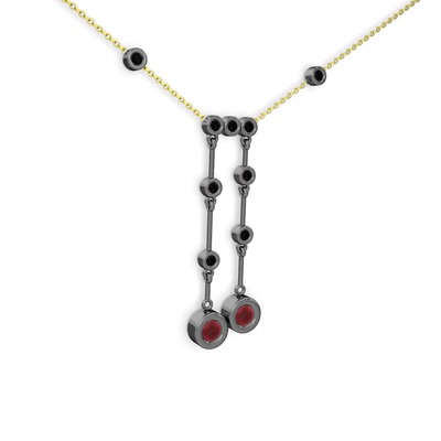 Kök yakut ve siyah zirkon 925 ayar siyah rodyum kaplama gümüş kolye (40 cm altın rolo zincir)