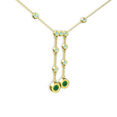Kök zümrüt ve akuamarin 14 ayar altın kolye (40 cm altın rolo zincir)