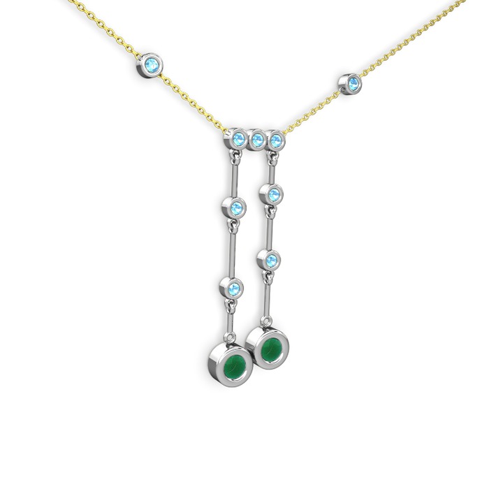 Kök zümrüt ve akuamarin 8 ayar beyaz altın kolye (40 cm altın rolo zincir)