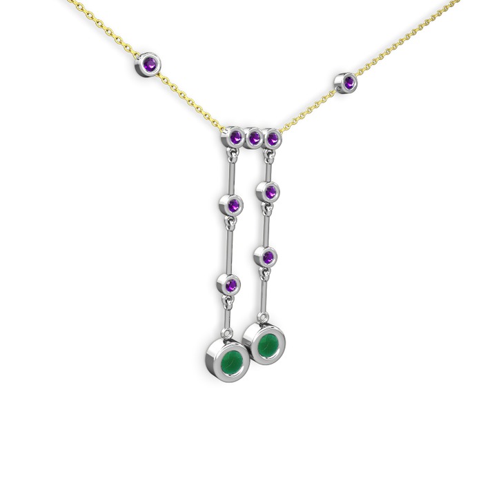 Kök zümrüt ve ametist 8 ayar beyaz altın kolye (40 cm altın rolo zincir)