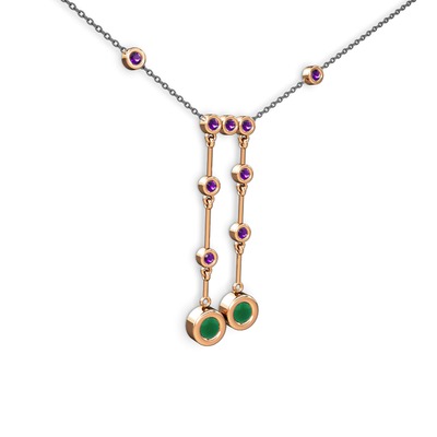 Kök zümrüt ve ametist 925 ayar rose altın kaplama gümüş kolye (40 cm gümüş rolo zincir)