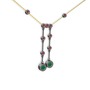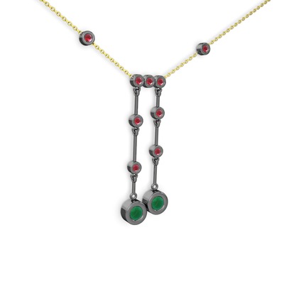 Kök zümrüt ve kök yakut 925 ayar siyah rodyum kaplama gümüş kolye (40 cm altın rolo zincir)