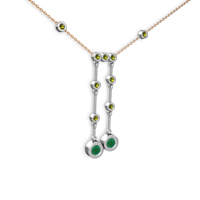 Kök zümrüt ve peridot 18 ayar beyaz altın kolye (40 cm rose altın rolo zincir)