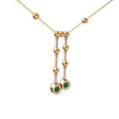 Kök zümrüt ve sitrin 925 ayar rose altın kaplama gümüş kolye (40 cm altın rolo zincir)