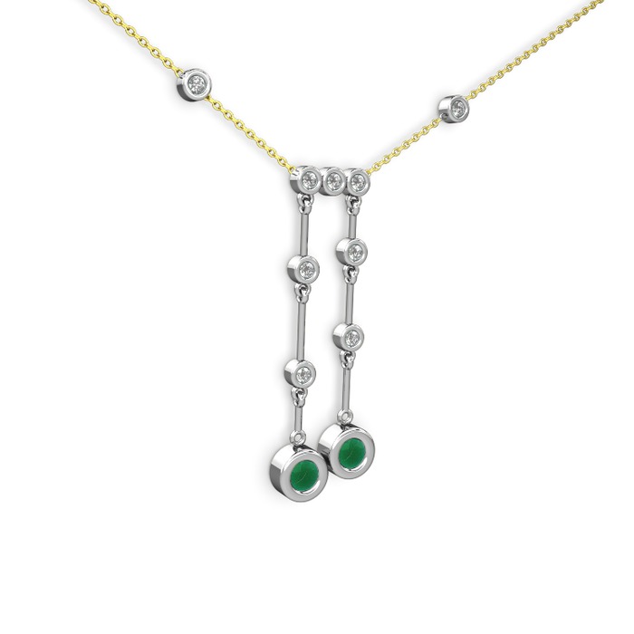 Kök zümrüt ve swarovski 18 ayar beyaz altın kolye (40 cm altın rolo zincir)