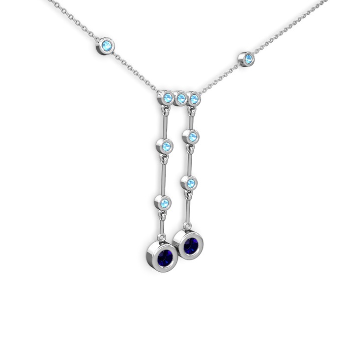 Lab safir ve akuamarin 14 ayar beyaz altın kolye (40 cm gümüş rolo zincir)