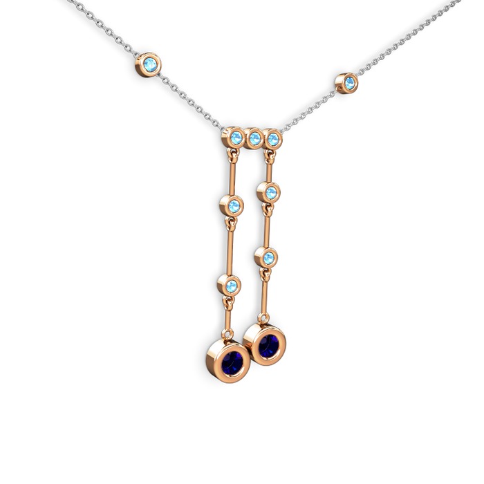Lab safir ve akuamarin 8 ayar rose altın kolye (40 cm beyaz altın rolo zincir)